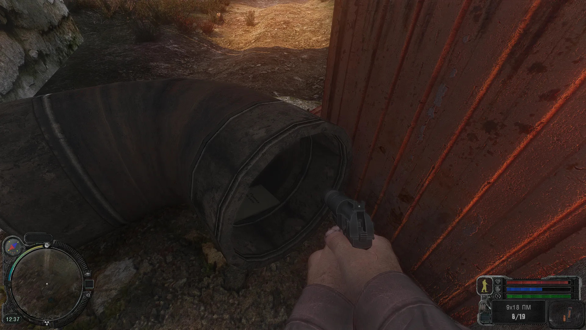 После спасения Шустрого Волк попросит нас найти для него документы. Стоит посмотреть в тоннеле(рядом с переходом в Кишку). Осторожно, у тоннеля нас будут ждать собаки. В награду мы получим базовое снаряжение(Рюкзак, костюм, маску)